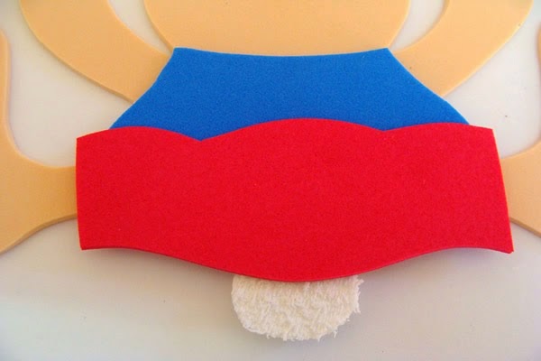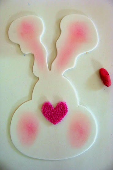 5 - Após cortar o rosto com a ajuda do molde, passe giz de cera rosa para dar vida às bochechas e às orelhinhas.