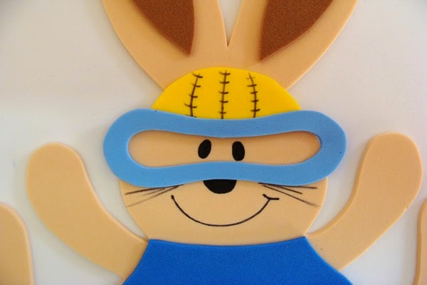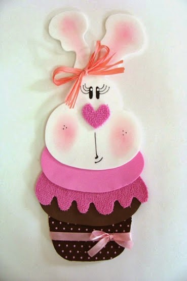 8 - Cole o lacinho de plástico na testa da coelhinha e a peça inteira na base para finalizar o trabalho.