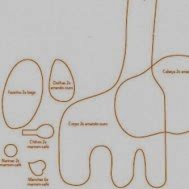 1 - Recorte duas vezes: corpo, cabeça, focinho e chifres. Recorte as manchas para o corpo na quantidade desejada. Depois contorne o corpo com caseado deixando uma abertura. Deixe o pescoço para o final para facilitar o enchimento.