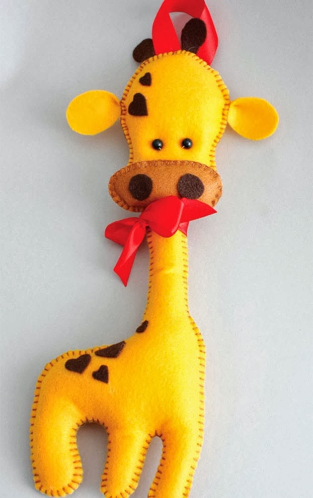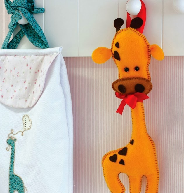 Boa Tarde! A sugestão de hoje é uma girafinha muito charmosa em feltro. No site de onde foi retirada, está como artesanato para quarto de menino, mas acho que serve para ambos. Bjs.