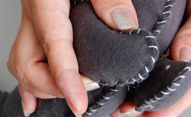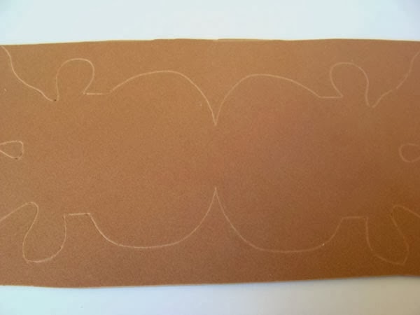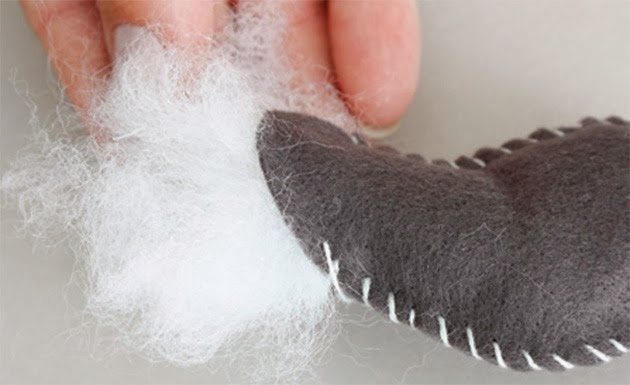 1 - Risque e recorte no feltro duas vezes o corpo e o focinho e quatro vezes as patas.