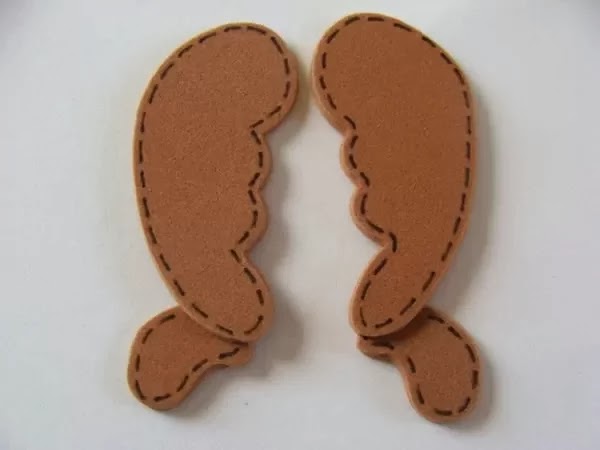 1 - Corte o EVA utilizando os moldes presente abaixo. No caso do EVA marrom, para dar um acabamento legal, use caneta preta e passe uma linha tracejada nas bordas.