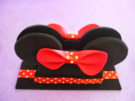 Cole os lacinhos na parte de cima da silhueta da Minnie, como mostra a foto.