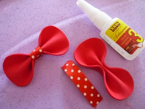 Para fazer os lacinhos cole seguindo a sequência das fotos.